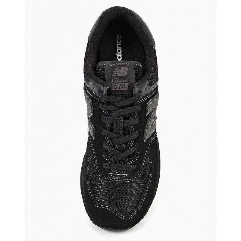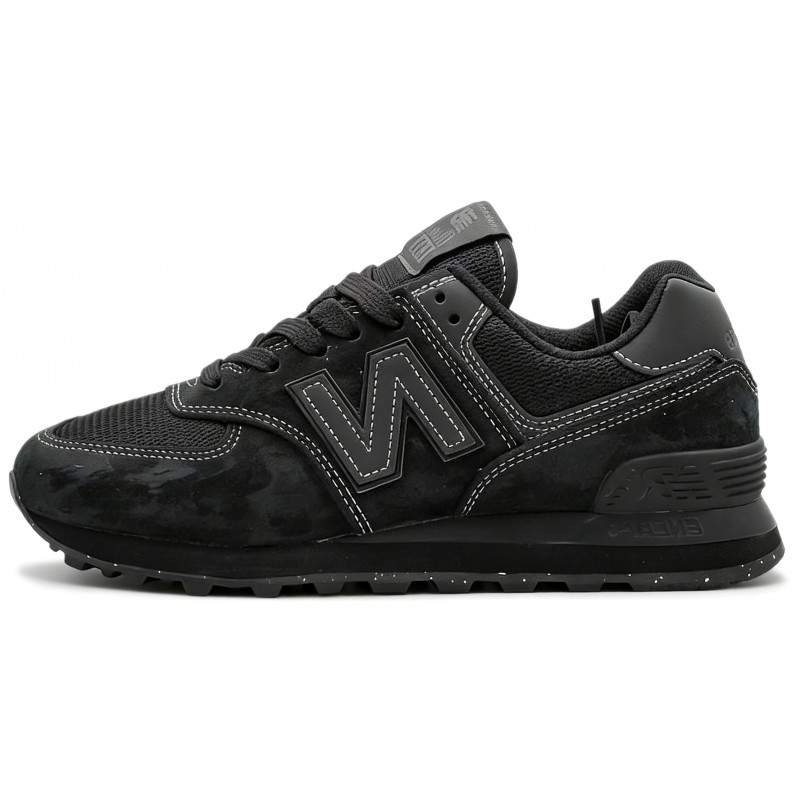New Balance 574 Total Black с белой строчкой
