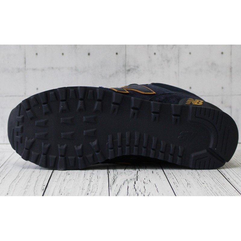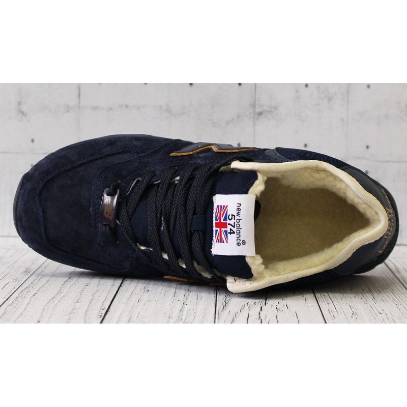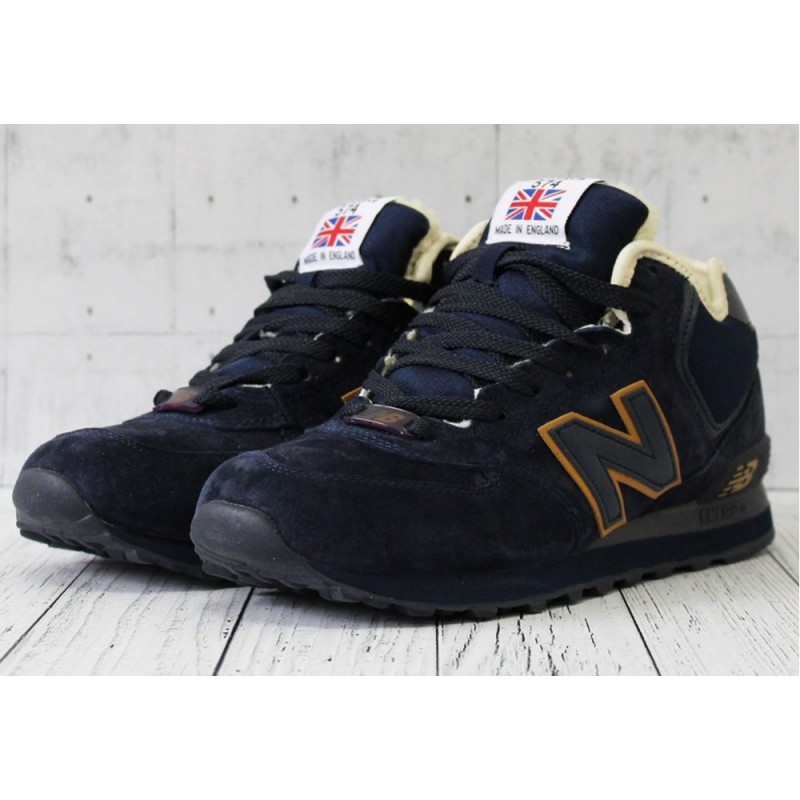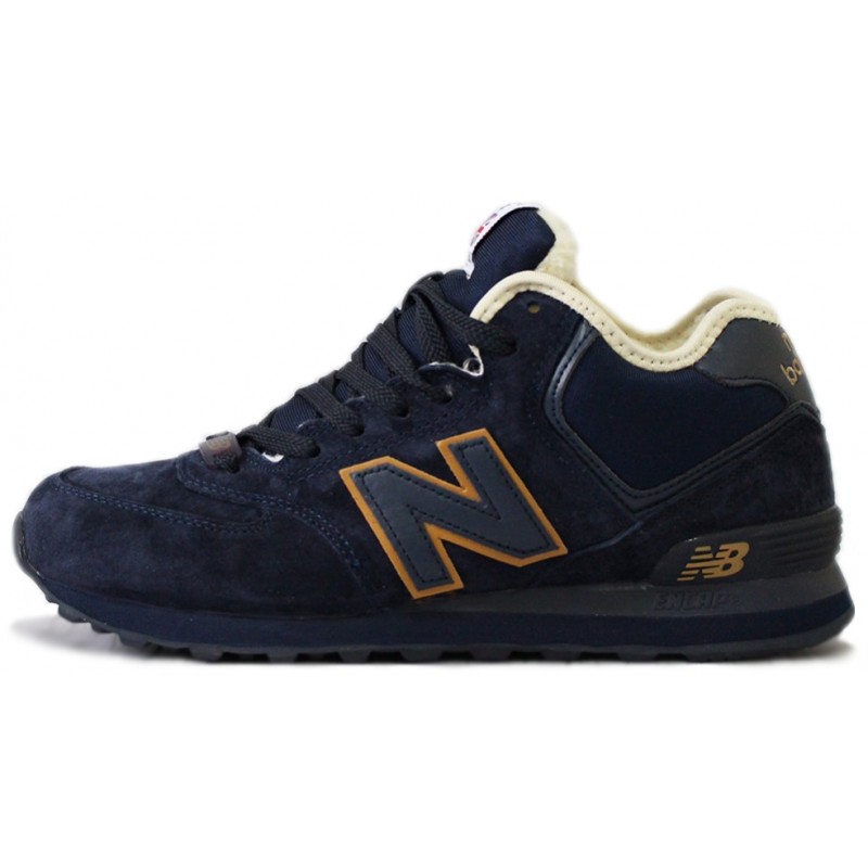 Кроссовки мужские New Balance 574 High замшевые синие с оранжевым зимние